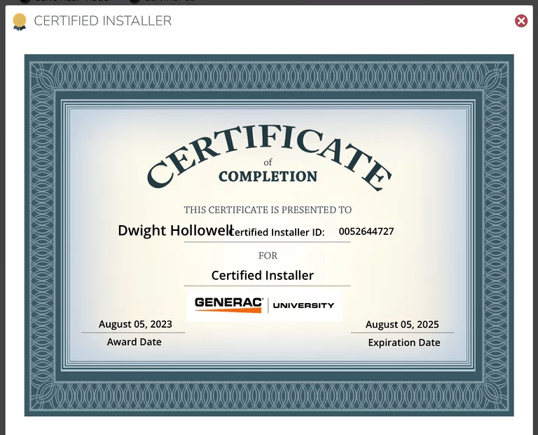 Certified Generac Installer